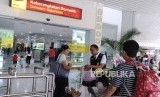 Petugas memeriksa tiket calon penumpang pesawat udara di Terminal Domestik Bandara Internasional I Gusti Ngurah Rai, Bali, Minggu (5/1/2020). (FOTO : FIKRI YUSUF/ANTARA FOTO)