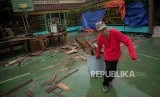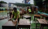 Sejumlah pegawai membersihkan sarana belajar saat kerja bakti di SMP Negeri 46 Jakarta, Jalan Rukun, Pasar Minggu, Senin (6/1). (FOTO : Thoudy Badai_Republika)