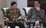 Menteri Perencanaan Pembangunan Nasional/Kepala Bappenas Suharso Monoarfa (kiri) berbincang dengan Menteri Sosial Juliari P. Batubara sebelum mengikuti Sidang Kabinet Paripurna di Istana Negara, Jakarta, Senin (6/1/2020). (FOTO : WAHYU PUTRO A/ANTARA FOTO)