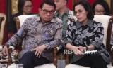 Kepala Staf Presiden Moeldoko (kiri) berdiskusi dengan Menteri Keuangan Sri Mulyani saat mengikuti Sidang Kabinet Paripurna di Istana Negara, Jakarta, Senin (6/1/2020). (FOTO : WAHYU PUTRO A/ANTARA FOTO)