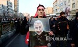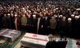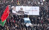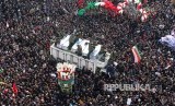 REPUBLIKA.CO.ID, TEHERAN -- Ribuan massa menghadiri prosesi pemakaman Mayor Jenderal Qassem Soleimani di Teheran, Iran, Senin (6/1). Jenderal yang terbunuh oleh serangan udara miiliter AS di Irak ini dibawa ke Teheran untuk dimakamkan. Penyerangan Jenderal Iran pemimpin pasukan Quds oleh Amerika Serikat ini menyebabkan suhu politik di Timur Tengah kembali memanas.