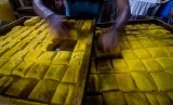 Pekerja membuat tahu di Cibuntu, Bandung, Jawa Barat, Senin (6/1/2020). (FOTO : Antara/Raisan Al Farisi)
