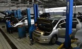 Montir memperbaiki mobil bekas terendam banjir, di salah satu bengkel mobil di Cawang, Jakarta, Senin (6/1/2020). (FOTO : Antara/Aditya Pradana Putra)