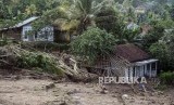 Salah satu rumah yang terdampak longsor di Desa Harkatjaya, Sukajaya, Bogor, Jawa Barat, Senin (6/1). (FOTO : Republika/Putra M. Akbar)