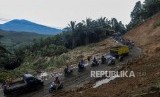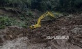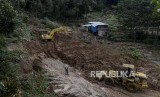 Sejumlah alat berat saat memindahkan tanah untuk membuka jalan di Desa Harkatjaya, Sukajaya, Bogor, Jawa Barat, Senin (6/1). (FOTO : Republika/Putra M. Akbar)