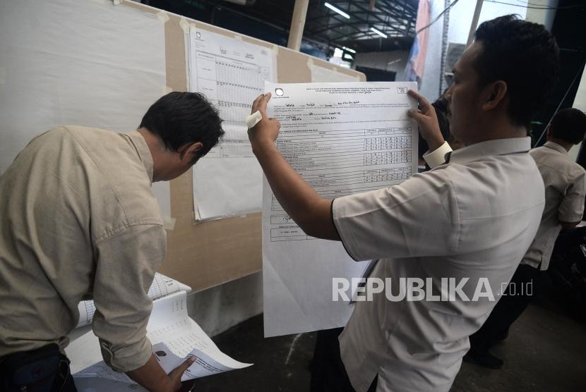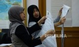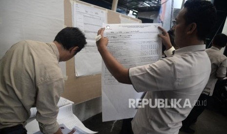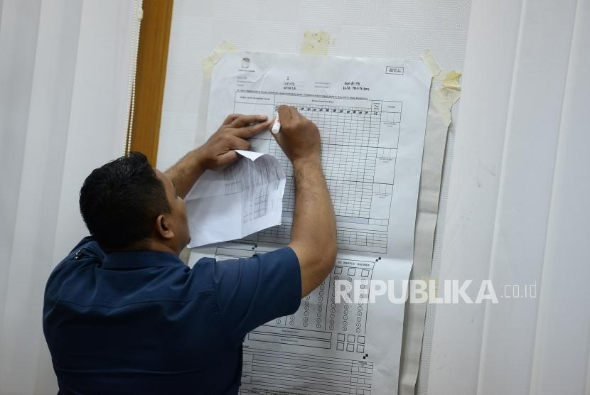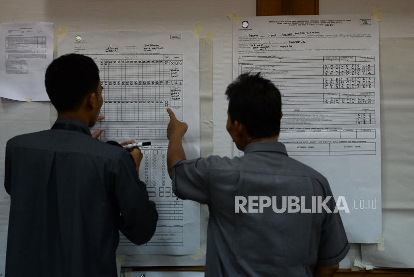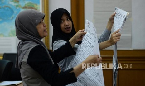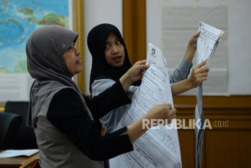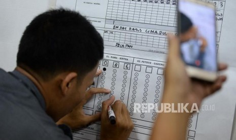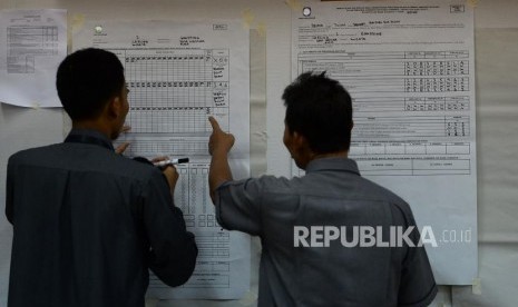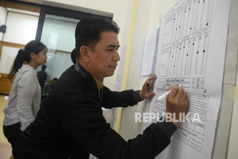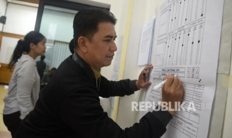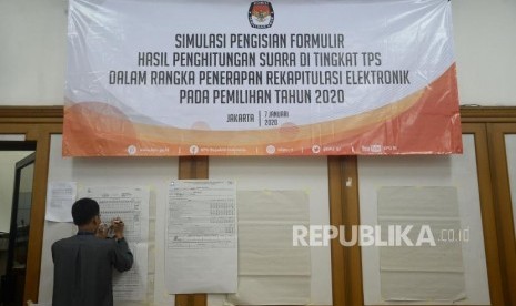 REPUBLIKA.CO.ID, JAKARTA -- Petugas mengikuti simulasi pengisian formulir hasil perhitungan suara di tingkat TPS di Kantor KPU, Jakarta, Selasa (7/1). Kegiatan tersebut dalam rangka penerapan rekapitulasi elektronik pada pemilihan tahun 2020.