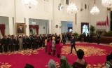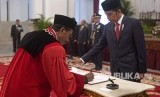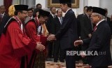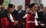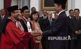 Presiden Jokowi melantik dua hakim MK di Istana Negara, Selasa (7/1). (FOTO : Republika/Sapto Andika Candra)