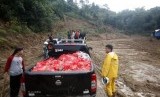 Bantuan logistik makanan dan pakaian saat akan distribusikan oleh relawan ke desa terdampak bencana di Desa Harkat Jaya, Sukajaya, Bogor, Jawa Barat, Rabu (8/1/2020). (FOTO : ANTARA FOTO)
