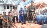 REPUBLIKA.CO.ID, JAKARTA -- Menteri Kelautan dan Perikanan Edhy Prabowo (kedua kanan) meninjau kapal pencuri ikan berbendera Vietnam di Stasiun Pengawasan Sumber Daya Kelautan dan Perikanan (PSDKP) Pontianak di Sungai Rengas, Kabupaten Kubu Raya, Kalimantan Barat, Kamis (9/1/2020).