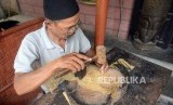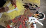 REPUBLIKA.CO.ID, YOGYAKARTA -- Perajin wayang kulit membuat tokoh pewayangan di Putra Wayang, Yogyakarta, Kamis (9/1).