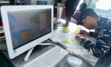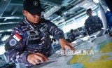 Perwira Divisi Navigasi KRI Usman Harun-359 Letda Laut (P) Muhammad Fadhil menyiapkan track pelayaran saat akan meninggalkan Faslabuh Lanal Ranai, Selat Lampa, Natuna, Kepulauan Riau, Kamis (9/1/2020). (FOTO : Antara/M Risyal Hidayat)