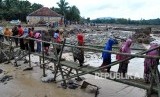 Sejumlah warga melihat dampak dari banjir bandang di Kampung Parung Sapi, Desa Kalong Sawah, Kecamatan Jasinga, Kabupaten Bogor, Jawa Barat, Kamis (9/1/2020). (FOTO : Antara/Arif Firmansyah)