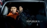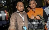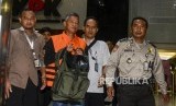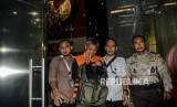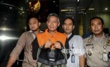 REPUBLIKA.CO.ID, JAKARTA -- Komisioner KPU Wahyu Setiawan memakai rompi oranye seusai menjalani pemeriksaan di gedung KPK, Jakarta, Jumat (10/1).