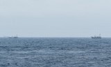 Kapal Coast Guard China-5202 dan Coast Guard China-5403 membayangi KRI Usman Harun-359 saat melaksanakan patroli mendekati kapal nelayan pukat China yang melakukan penangkapan ikan di ZEE Indonesia Utara Pulau Natuna, Sabtu (11/1/2020). (FOTO : M RISYAL HIDAYAT/ANTARA FOTO)