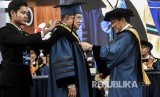 REPUBLIKA.CO.ID, BANDUNG -- Mantan wakil presiden (Wapres) M Jusuf Kalla meraih gelar kehormatan Doktor Honoris Causa (HC) dari Institut Teknologi Bandung (ITB), Senin (13/1) di Aula Barat Kampus ITB. Tokoh yang berasal dari Sulawesi Selatan ini dinilai berinovasi dalam bidang peningkatan produktivitas sebuah sistem perusahaan, institusi sektor publik, dan institusi pemerintahan.