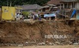 REPUBLIKA.CO.ID, LEBAK -- Bencana longsor dan banjir bandang dikawasan Kampung Muara memutus Jembatan penghubung jalur Cipanas - Warung Banten dan sebanyak 40 rumah rusak berat, 15 rumah terbawa arus. Akibat kejadian tersebut bantuan logistik ke kampung Muara didistribusikan menggunakan kawat sling baja.
