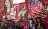 Massa yang tergabung dalam Gerakan Buruh Bersama Rakyat (GEBRAK) menggelar aksi penolakan terhadap Omnibus Law RUU Cipta Lapangan Kerja di depan gedung DPR, Jakarta, Senin (13/1/2020). (FOTO : ANTARA FOTO)