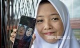 Nabila Azzahrah (16) memperlihatkan foto saudara kembarnya yang ditemuinya melalui media sosial twitter, di Kabupaten Gowa, Sulawesi Selatan, Senin (13/1/2020). (FOTO : Antara/Abriawan Abhe)