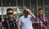 Terdakwa penyuap Bupati Muara Enim Robi Okta Pahlevi (tengah) dikawal anggota Brimob Polda Sumsel saat tiba di Pengadilan Tipikor Palembang, Sumatera Selatan, Selasa (14/1/2020). (FOTO : NOVA WAHYUDI/ANTARA FOTO)