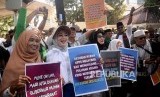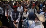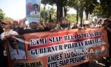 REPUBLIKA.CO.ID, JAKARTA -- Sejumlah massa pro Gubernur DKI Jakarta Anies Baswedan melakukan aksi Bersama Anies di Balai Kota, Jakarta, Selasa (14/1).