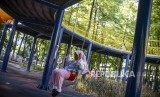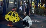 Seorang ibu menemani anaknya bermain di Taman Puring, Kebayoran Baru, Jakarta, Selasa (14/1). (FOTO : Republika/Putra M. Akbar)
