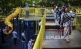 Anak-anak saat bermain di Taman Puring, Kebayoran Baru, Jakarta, Selasa (14/1). (FOTO : Republika/Putra M. Akbar)