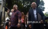 Ketua KPU Arief Budiman berjalan bersama Ketua Tim Hukum PDIP I Wayan Sudirta (kanan) sebelum melakukan audiensi di Kantor KPU, Jakarta, Kamis (16/1). (FOTO : Republika/Prayogi)