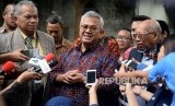 Ketua KPU Arief Budiman (tengah) bersama Ketua Tim Hukum PDIP I Wayan Sudirta (kanan) dan Koordinator Tim Pengacara PDIP Teguh Samudera (kiri) memberikan keterangan usai melakukan audiensi di Kantor KPU, Jakarta, Kamis (16/1). (FOTO : Republika/Prayogi)