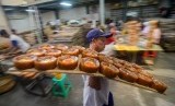 Pekerja membawa dodol untuk dikemas di rumah produksi dodol keranjang Tekkie di Bandung, Jawa Barat, Kamis (16/1/2020). Jelang perayaan Imlek, rumah produksi dodol keranjang Tekkie dapat memproduksi 4.000 dodol per hari yang didistribusikan ke berbagai Kota di Jawa Barat. (FOTO : Raisan Al Farisi/Antara)
