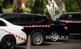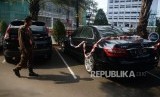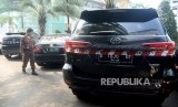 Petugas Kejaksaan Agung RI melintas didekat kendaraan barang bukti sitaan kasus korupsi Asuransi Jiwasraya yang terpakir di Gedung Tindak Pidana Khusus, Kejaksaan Agung RI, Jakarta, Jumat (17/1). (FOTO : Republika/Prayogi)