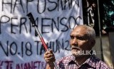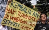 REPUBLIKA.CO.ID, BANDUNG -- Penyandang disabilitas netra melakukan aksi solidaritas untuk korban pengusiran Wyata Guna di area trotoar di Jalan Pajajaran, Kota Bandung, Jumat (17/1).