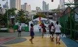 Anak bermain di taman Rumah susun (Rusun) Tanah Abang, Jalan K.H. Mas Mansyur, Kebon Kacang, Jakarta Pusat, Jumat (17/1). (FOTO : Thoudy Badai_Republika)