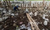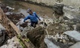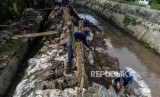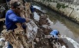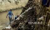 REPUBLIKA.CO.ID, JAKARTA - Sejumlah Petugas Dinas Sumber Daya Air (SDA) Jakarta Selatan saat memperbaiki tanggul yang jebol di Kompleks TVRI Kemandoran, Kebayoran Lama, Jakarta, Ahad (19/1).