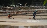 Sejumlah pekerja menyelesaikan proyek revitalisasi Taman Monumen Nasional, Jakarta, Ahad (19/1). (FOTO : Thoudy Badai_Republika)