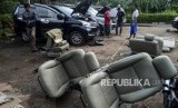 Sejumlah warga melihat kondisi mobilnya yang mogok di Kompleks TVRI Kemandoran, Kebayoran Lama, Jakarta, Ahad (19/1). (FOTO : Republika/Putra M. Akbar)