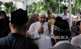 Dokter sekaligus kerabat dari Palestina Ahed Abu Alatta membacakan doa saat prosesi pemakaman pendiri lembaga kemanusiaan Medical Emergency Rescue Committe (MER-C) Joserizal Jurnalis di Tempat Pemakaman Umum (TPU) Pondok Ranggon, Jakarta Timur, Senin (20/1)). (FOTO : Thoudy Badai_Republika)