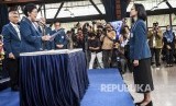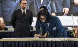 Rektor Institut Teknologi Bandung (ITB) Periode 2020-2025 Reini D Wirahadikusumah (kanan) disaksikan Gubernur Jawa barat Ridwan Kamil (kiri) menandatangani naskah berita acara Ikrar Jabatan saat Sidang Terbuka Pelantikan Rektor Baru Institut Teknologi Bandung (ITB) Periode 2020-2025 di Aula Barat ITB, Jalan Ganesha, Kota Bandung, Senin (20/1) (FOTO : Abdan Syakura)