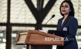 Rektor Institut Teknologi Bandung (ITB) Periode 2020-2025 Reini D Wirahadikusumah memberikan pidato saat Sidang Terbuka Pelantikan Rektor Baru Institut Teknologi Bandung (ITB) Periode 2020-2025 di Aula Barat ITB, Jalan Ganesha, Kota Bandung, Senin (20/1). (FOTO : Republika/Edi Yusuf)