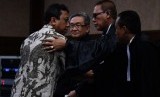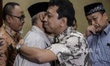 Terdakwa kasus suap jual beli jabatan di lingkungan Kementerian Agama Romahurmuziy berpelukan dengan kerabatnya sebelum menjalani sidang putusan di Pengadilan Tipikor, Jakarta, Senin (20/1). (FOTO : Republika/Putra M. Akbar)