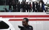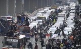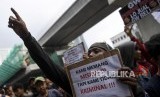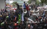 REPUBLIKA.CO.ID, JAKARTA -- Ratusan massa berunjukrasa di depan Kementeruan Hukum dan HAM Jl HR Rasuna Said di Jakarta, Rabu (22/1). Mereka memprotes pernyataan Menteri Yasonna Laoly yang dianggap menyingung perasaan warga Tanjung Priok.