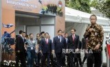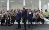 Presiden Joko Widodo bersama Menteri Pertahanan Prabowo Subianto dan Kepala Staf Kepresidenan Moeldoko usai menghadiri rapat pimpinan Kementerian Pertahanan di Jakarta, Kamis (23/1). (FOTO : Republika/Putra M. Akbar)