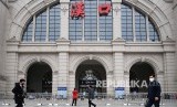 Warga melintasi Stasiun Kereta Hankou Railway yang ditutup pemerintah. Setelah seluruh Kota Wuhan disolasi untuk menghindari penyeberan virus nCoV. (FOTO : China Daily via Reuters)