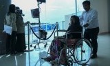 Petugas Kantor Kesehatan Pelabuhan (KKP) Palembang mengoperasikan alat deteksi suhu tubuh atau (FOTO : Antara/Nova Wahyudi)