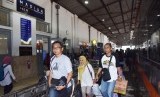Calon penumpang bersiap naik Kereta Api (KA) di Stasiun KA Madiun, Jawa Timur, Sabtu (25/1/2020). (FOTO : ANTARA FOTO)