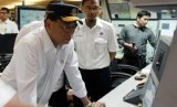 Menteri Perhubungan Budi Karya Sumadi melihat pergerakan pesawat di Runway 3 dari layar monitor Air Traffic Control Bandara Soekarno Hatta, Tangerang, Banten, Minggu (26/1/2020). (FOTO : ANTARA FOTO)