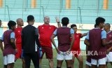 Pelatih PSM Makassar Bojan Hodak (tengah) memberikan arahan kepada pemain pada sesi latihan di lapangan Stadion Mini Cibinong, Bogor, Jawa Barat, Selasa (28/1/2020). (FOTO : Antara/Yulius Satria Wijaya)