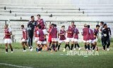 Sejumlah pesepakbola Tim Lalenok United asal Timor Leste melakukan sesi latihan di lapangan Stadion Mini Cibinong, Bogor, Jawa Barat, Selasa (28/1/2020). (FOTO : Antara/Yulius Satria Wijaya)
