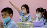 Siswa sebuah sekolah cina di Quezon City, Metro Manila, Filipina mengenakan masker menyusul wabah virus corona yang menyebar luas dan cepat di China daratan, Selasa (28/1). (FOTO : ELOISA LOPEZ/REUTERS)
