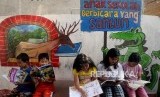 REPUBLIKA.CO.ID, JAKARTA -- Jika kita mengunjungi di Jalan Z RW 08, Kelurahan Jatipulo, Kecamatan Palmerah, Jakarta Barat akan tampak sesuatu yang berbeda. Tepat di depan jalan sudah terlihat gapura merah dengan patung buku besar di atasnya. Setelah melewati gapura, dinding-dinding rumah pun dihiasi dengan mural-mural yang menarik bertemakan literasi.