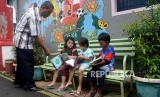 Sejumlah anak membaca di Fasilitas membaca bagi warga di Jalan Z RW 08, Kelurahan Jatipulo, Kecamatan Palmerah, Jakarta Barat. (FOTO : Prayogi/Republika)